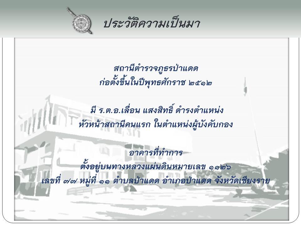 ประวัติความเป็นมาของสถานีตำรวจภูธรป่าแดด